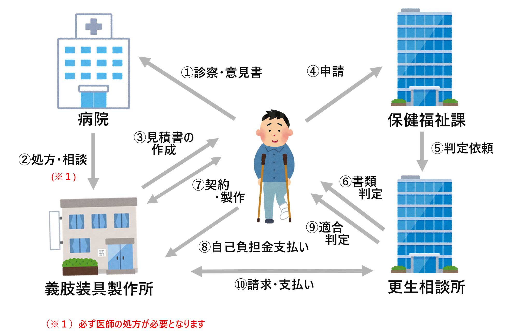 障がい者総合支援法による更生用義肢装具製作の手続きの流れ